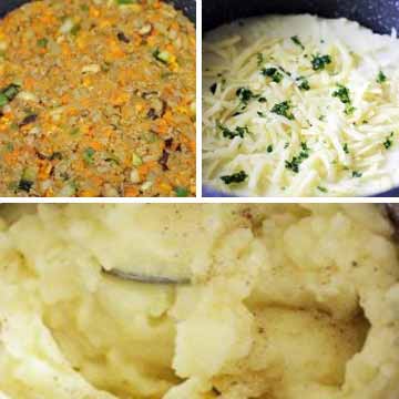 - ②でつくったクリーミーマッシュポテトを上に敷き詰め、シュレッドチーズと刻みパセリを散らして、200度に予熱していたオーブンで20分焼いたら出来上がり!