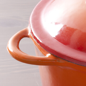 ホーロー素材でフォルムも可愛い無水調理鍋Orange Shadow(オレンジシャドウ)。ビビットカラーがかわいいホーロー鍋。色鮮やかなガラス質コーティグは、耐久性だけでなく料理をする気分も底上げ♪